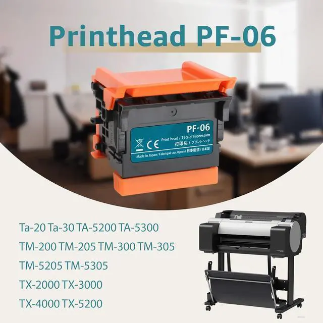 Compatible Models The PF-06 printhead is compatible with Canon TA-20, TA-30, TM-200, TM-205, TM-300, TM-305, TX-2000, TX-3000, TX-4000 printer (Please check the model number before purchasing, as different models of print heads are extremely similar in appearance.