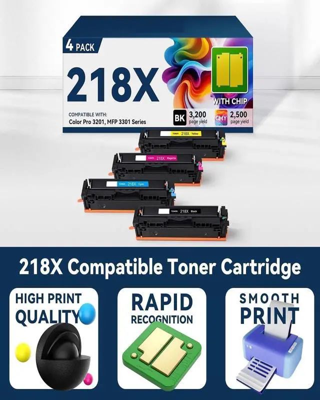 Smart Chip Technology for Smarter Prints Patented chips in each 218X cartridge ensure instant recognition by your HP printer, accurate toner level tracking, and adjustable color density for crisp, vibrant prints every time.