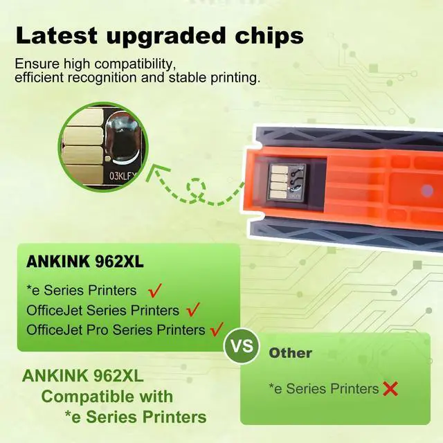 Higher compatibility : Ankink 962 XL combo pack ink cartridges with the smart chip technology compatible for H P + service, work well with *e series printers, ensuring efficient recognition and stable printing