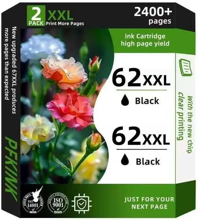 Package included: PFKink 62XXL for 62XL 62XL Ink Cartridges replacement Combo Pack (2* 62XXL Black).