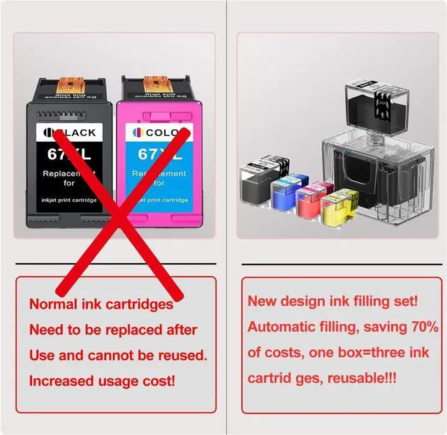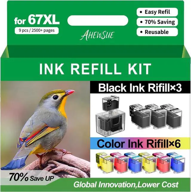 AHEWSUE 67XL Ink Refill Compatible with HP 67XL Black Color Ink Cartridges. Refill in 1 Minute. Save 70%. Print Perfectly! (Ink Cartridges Not Included)