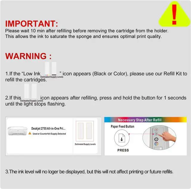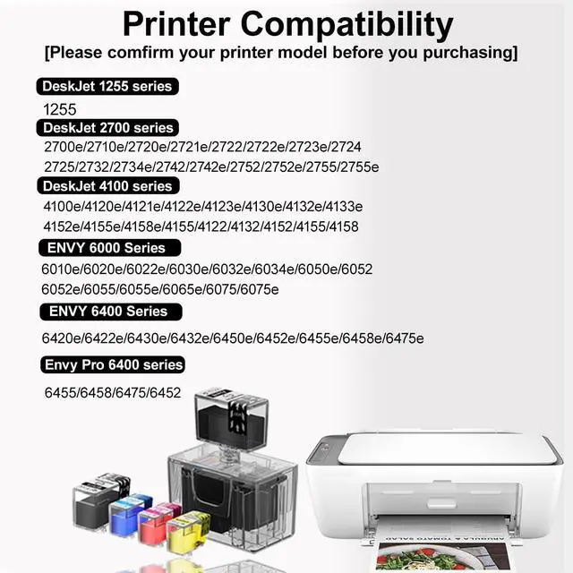 Compatible Printers: HP DeskJet 2827e 2800e 2800 2820 2821 2821e 2822 2823 2828 2829 2710e 2720e 2721e 2722e 2723e 2734e 2742e 2752e 2755e 2855e 4110e 4120e 4121e 4122e 4123e 4130e 4132e 4133e 4152e 4155e 4158e 4255e 1255 2331 2721 2722 2723 2724 2725 2726 2727 2729 2732 2733 2734 2735 2736 2737 274 2752 2755 2765 2772 2774, DeskJet Plus 4120 4122 4125 4132 4133 4135 4136 4140 4152 4155 4158 4165 4168 4172 4175 serie