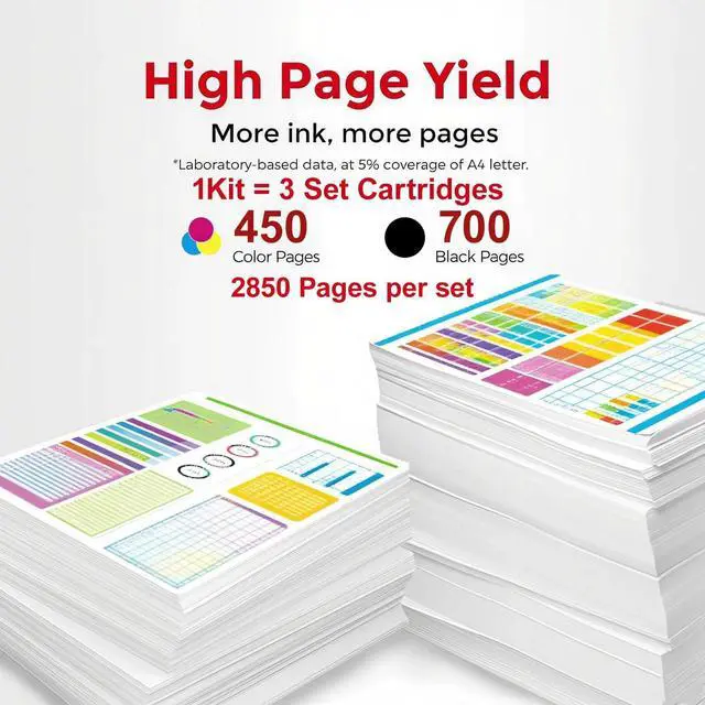 High Yield Printing: Each 67XL Black Ink Tank prints up to 550 pages, and each 67XL Color Ink Tank prints up to 450 pages. This 9-pack Ink Tanks delivers up to 2,500 pages in total (at 5% coverage on A4 paper).