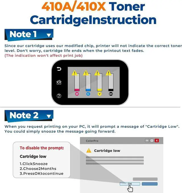 With Chip: Compatible Replacement for 410A toner cartridges 4 pack contain the chips, no need to remove and install them.