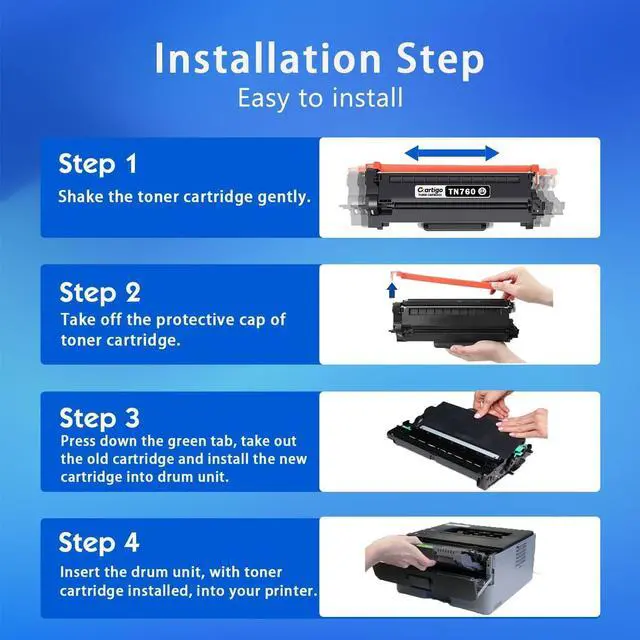 High quality: Our TN760 toner cartridge deliver vibrant, smudge-free prints with sharp text and rich colorsperfect for businesses, schools, hospitals, or frequent home users who demand professional results