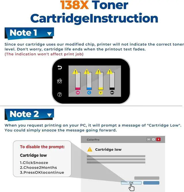 With Latest Chip: Replacement for 138X Black toner cartridge, Color LaserJet Pro 3001dw black toner cartridge, Color LaserJet Pro 3001fdw black toner cartridge,Color LaserJet Pro MFP 3101fdw black toner cartridge, Color LaserJet Pro MFP 3101sdw black toner cartridgecontains the chips, no need to remove and install them.