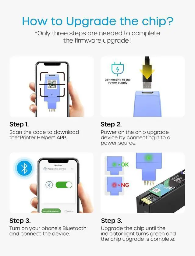 The Latest Version Chips Our 972X Ink Cartridge is equipped with the latest upgraded chip. They are designed to be easily installed and recognized by the printer, eliminating any compatibility issues or complicated installation processes.