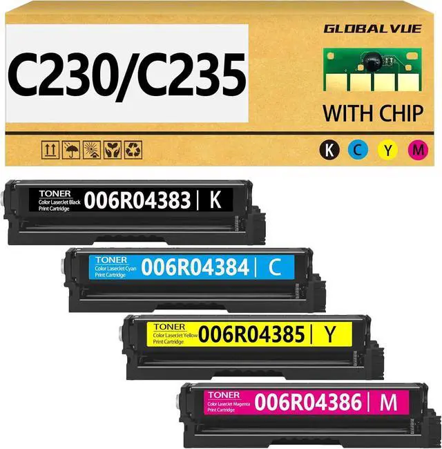 • Include: 4 pack C235 toner cartridges (006r04383 006r04384 006r04385 006r04386 black cyan yellow magenta) replacement for Xerox C235/DNI C230/DNI Color Multifunction Printer toner cartridges (packaging versions may vary)