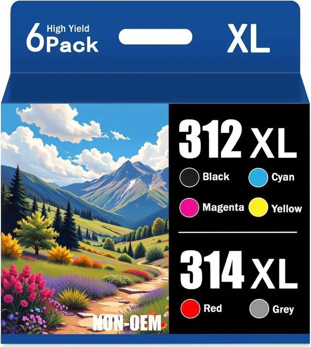 Content: 6 Pack High Yield Remanufactured 312XL 314XL Ink Cartridge of Expression Photo XP-15000 printers with NEW Updated Chip ( 1 x Black 312XL, 1 x Cyan 312XL, 1 x Magenta 312XL, 1 x Yellow 312XL, 1 x Grey 314XL , 1 x Red 314XL)