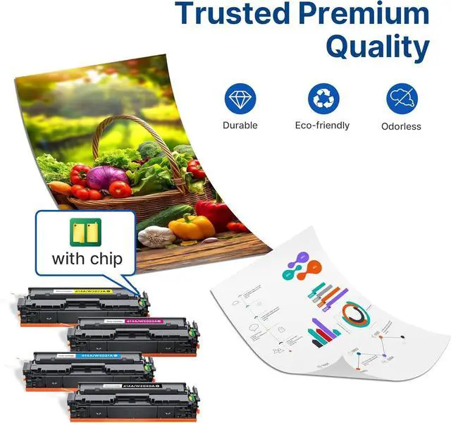 High Quality: 414A toner cartridge 4 pack high yield with chip and also Compatible for 414X toner cartridges 4 pack