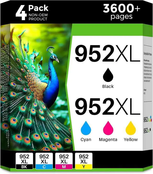 High Page Yield:2000 pages per 952xl black ink cartridge,1600 pages per 952xl color ink cartridge(Cyan Magenta Yellow),2X more pages than standard compatible 952 ink cartridges