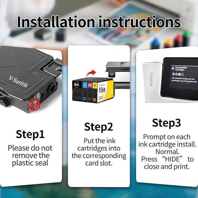 Authentic Quality & Reliability V-Surink replacement for HP 936xl ink cartridges combo pack ensures sharp text, vibrant colors, and a clog - resistant formula. For graphic designers working in studios, the vivid colors are essential for bringing their creative designs to life. Office workers rely on the sharp text for clear and professional - looking documents. Trusted by OfficeJet Pro 9125e 9120e Ink Cartridges users for professional grade results, it guarantees high quality output every time