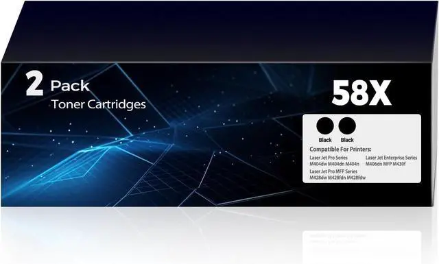 Package Contents: 2 Pack 58X CF258X Toner Cartridges Replacement for 58X Black Toner Cartridge