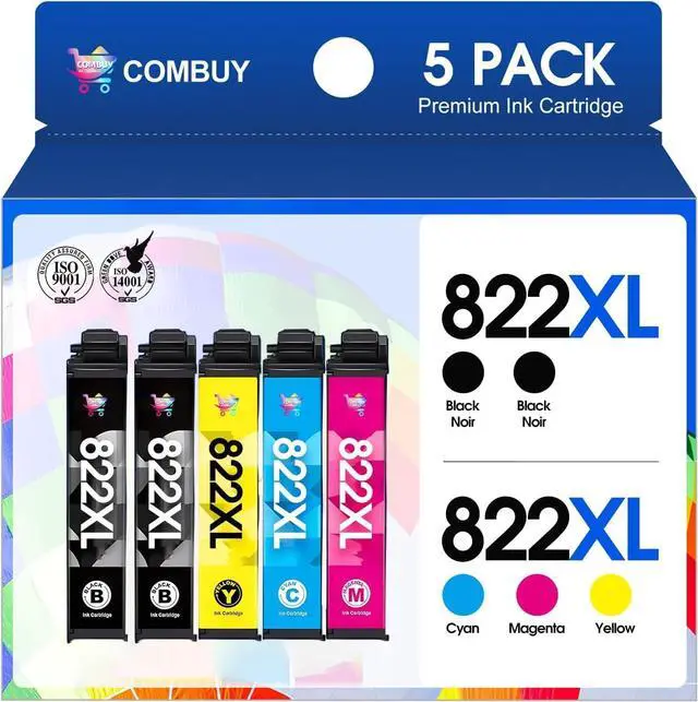 Package Content: 822xl ink cartridges combo pack replacement for Epson 822XL ink cartridges (2 x Black 822xl ink cartridge, 1 x Cyan 822xl ink cartridge, 1 x Magenta 822xl ink cartridge , 1 x Yellow 822xl ink cartridge, total 5 Pack)