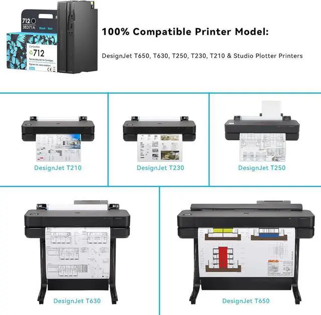712 Ink Cartridge: 712 black ink cartridge 80ml(3ED71A) replacement compatible for HP designjet T210 T230 T250 T630 T650 & Studio Plotter Printers