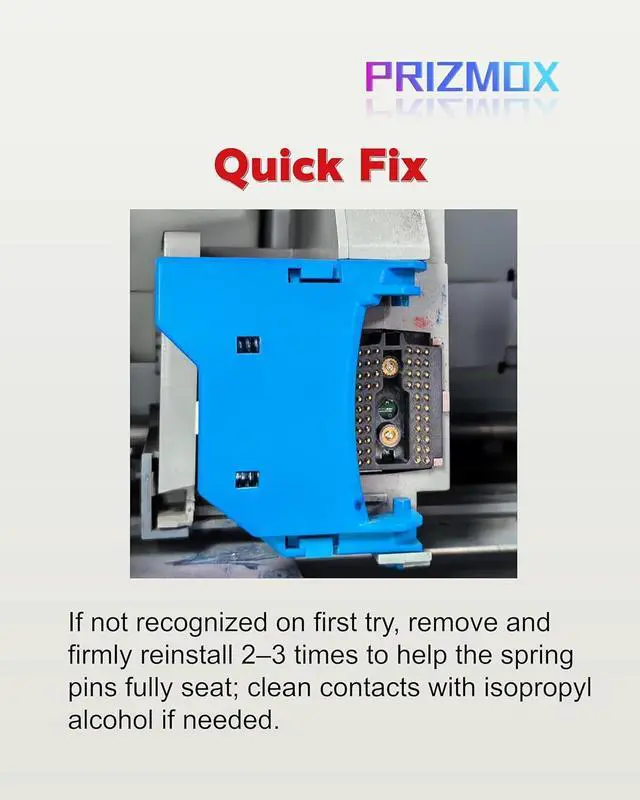 Some printers use spring-loaded contact pins to read the cartridge chip. If the cartridge is not detected, please reinstall it 23 times for proper contact