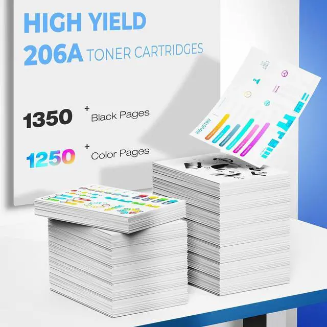 High Page Yields: 1350 pages per 206A black toner cartridge, 1250 pages for per 206A color toner cartridge, at 5% coverage for A4 paper.