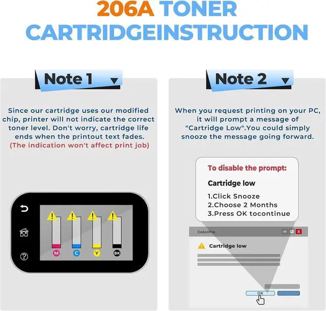 Excellent Performance: The 206A 206X Toner Cartridge for HP206A adapts the latest upgraded chip, ensuring high compatibility for printers. It also avoids common printing problems such as streaks, smudges, and leaking. The 206 A 206 X Toner Cartridge delivers vivid and clear printing and produces sharp text and vibrant images, ensuring consistent, high-performance output.