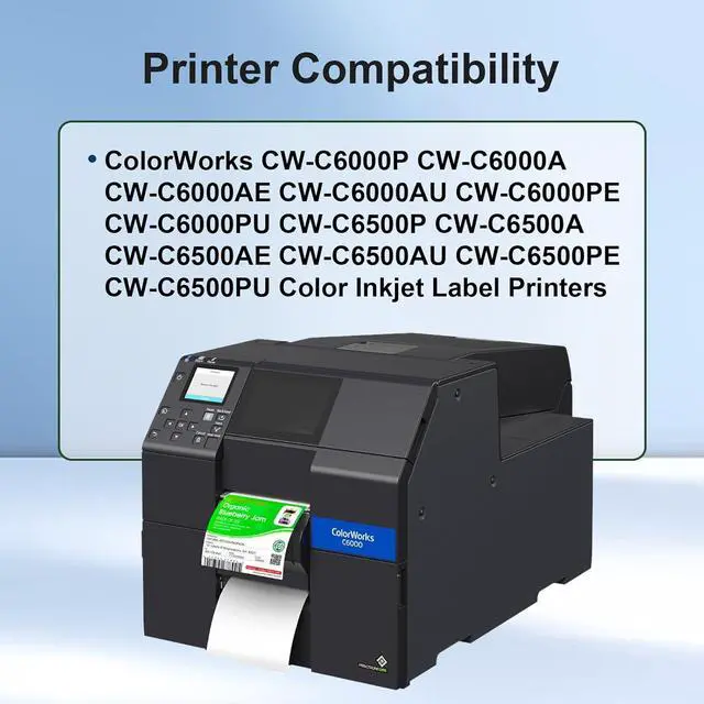 Printer Compatibility: Replacement for ColorWorks CW-C6000P CW-C6000A CW-C6000AE CW-C6000AU CW-C6000PE CW-C6000PU CW-C6500P CW-C6500A CW-C6500AE CW-C6500AU CW-C6500PE CW-C6500PU Color Inkjet Label Printers