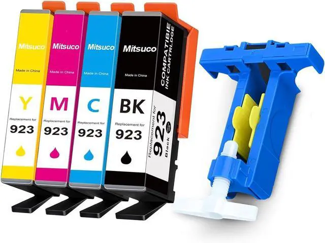 Package Contents:923 ink cartridges combo pack, 1 Black, 1 Cyan, 1 Magenta, 1 Yellow; 1 Chip Removal Tool, manual