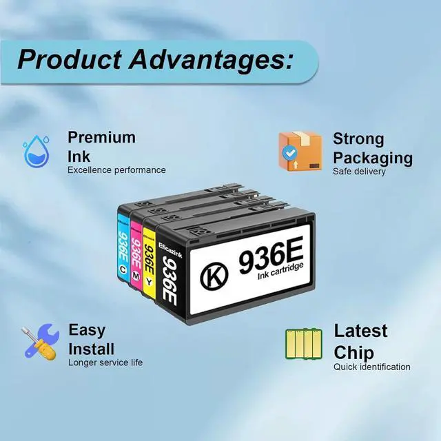 Package Contents: 4 Packs of 936/936e Ink Cartridge (1 Black 1 Cyan 1 Magenta 1 Yellow)
