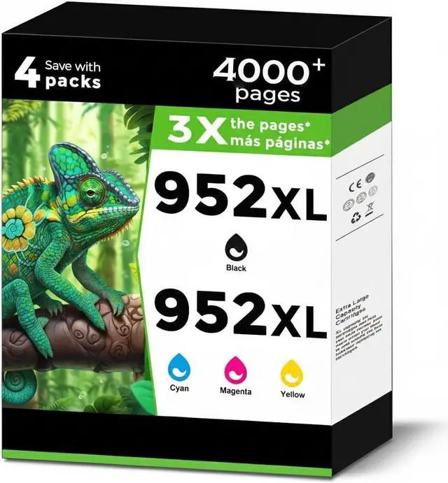 What's in the box: 952XL ink cartridges combo pack contains 1 x Black 952 XL ink cartridge, 1 x Cyan 952 XL ink cartridge, 1 x Magenta 952 XL ink cartridge, 1 x Yellow 952 XL ink cartridge (4 cartridges in total).