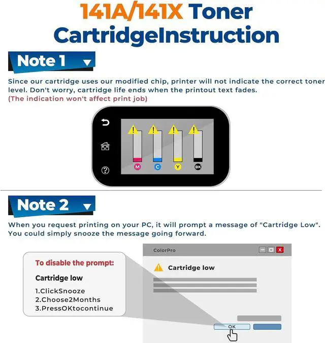 With Chip: Compatible Replacement for 141A toner cartridges 2 pack contain the chips, no need to remove and install them.