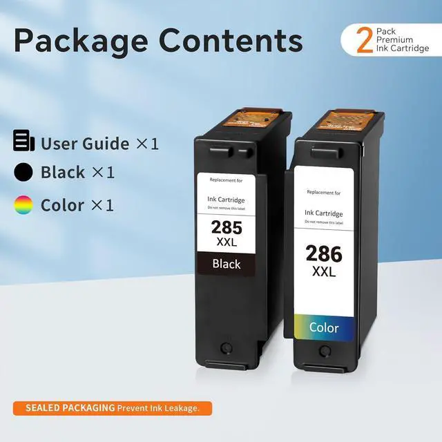 Package Contents: PG285XL black x1, CL286XL tri-color(cyan, magenta, yellow) x1, all with latest chips