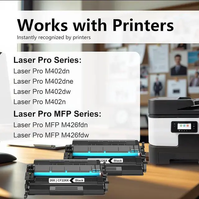 Compatibility: Compatible 26X Toner Cartridges, Laser Pro M402dn, M402dne, M402dw, M402n; Laser Pro MFP M426fdn, M426fdw Printers