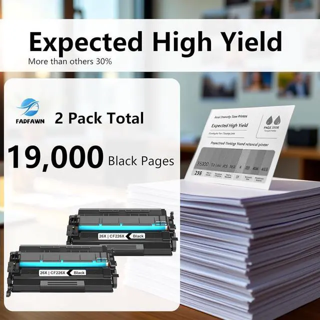 High Page Yield: up to 9,500 pages per 26X Black Toner cartridge, 2pack total 19000 pages(at 5% coverage)