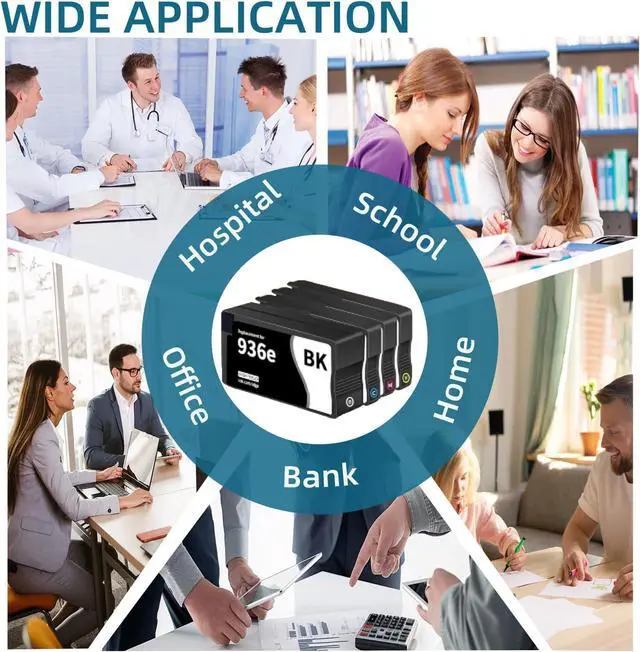 Package Content: 936XL Ink Cartridges Combo Pack (1 × 936e 936xl Black, 1 × 936e 936xl Cyan, 1 × 936e 936xl Magenta, 1 × 936e 936xl Yellow Ink Cartridge)