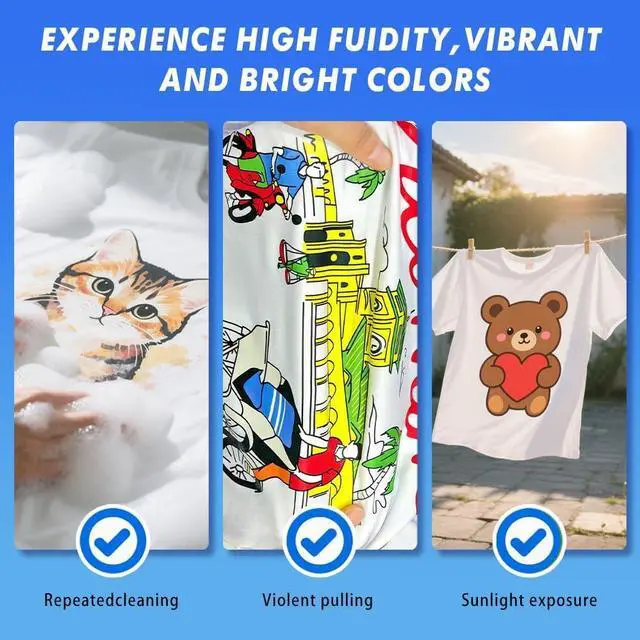 Long-lasting color: DTF ink prints out the perfect reproduction of the pattern, the color is long-lasting, bright colors, many times washing can also maintain the original colors