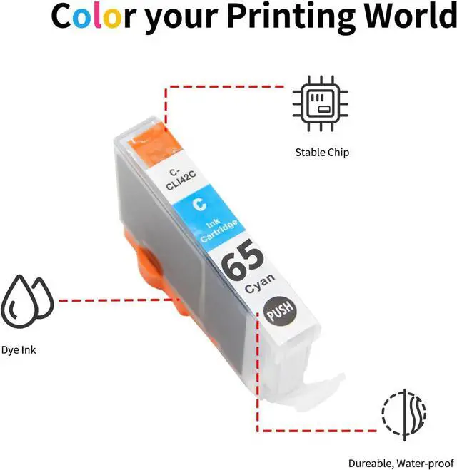Package Contents: 8 Pack CLI65 CLI-65 Ink Cartridge ( Black / Cyan / Magenta / Yellow / Photo Cyan / Photo Magenta / Gray / Light Gray )