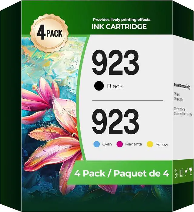923 Ink Cartridges Package Contents: 923 Ink Cartridge Replacement 4 Pack for 923 ink cartridges - 1 Black, 1 Cyan, 1Yellow, 1 Magenta