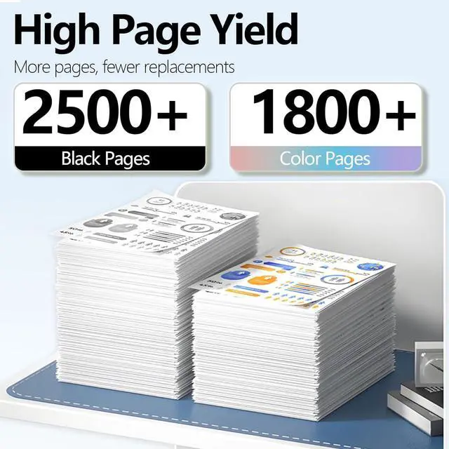High Yield: 2,500 pages per black ink cartridge & 1,650 pages per tri-color ink cartridge