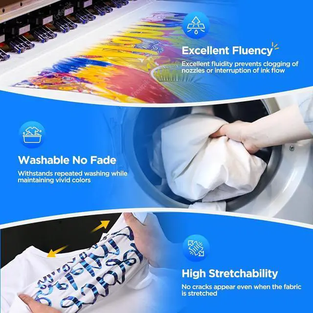 Widely Application DTF inks adhere to a wide range of fabrics, ensuring vibrant transfers on a variety of materials, including cotton, denim, nylon and blends. Suitable for dark and light colored fabrics, can be used for DIY designs on canvas, hoodies, shoes, bags, t-shirts, pillows and more