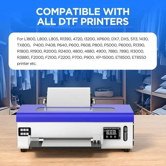 High Compatibility Suitable for print heads L1800, L800, L805, ET-8550, ET8500, XP15000, P400/P408, P600/P608, P800, R1390, R1800, R1900, R2000, R2400, R2880, R3000, 3880, 4880, 7880, etc. Works great with PUNEHOD's DTF printers, DTF powders and DTF transfer films