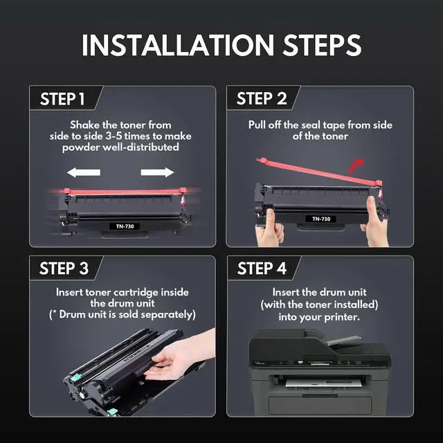Package content:4 Pack TN-730 TN730 Black Toner Cartridge