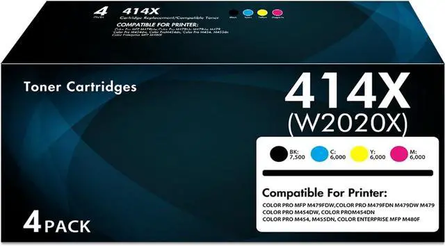 Included: 414X toner cartridges 4 pack ( 1 x W2020X black toner, 1 x W2021X cyan toner, 1 x W2022X yellow toner, 1 x W2023X magenta toner )