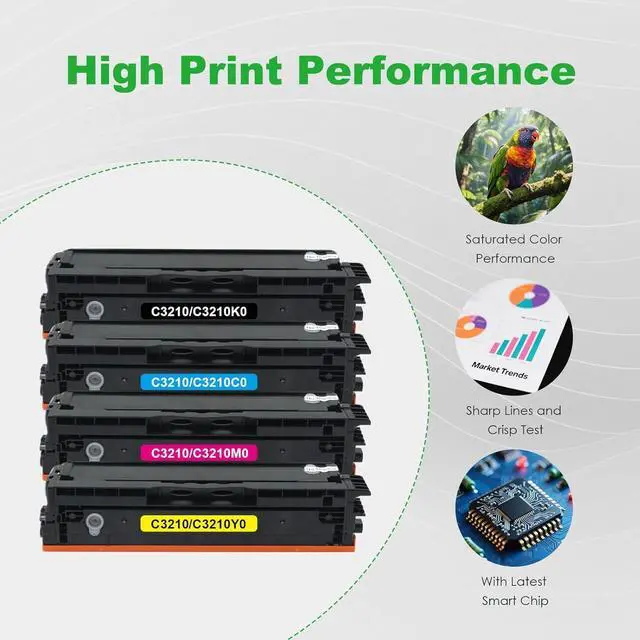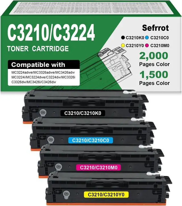 Package Contents: 1× Black, 1× Cyan, 1× Magent, 1× Yellow C3210 Toner Cartridges
