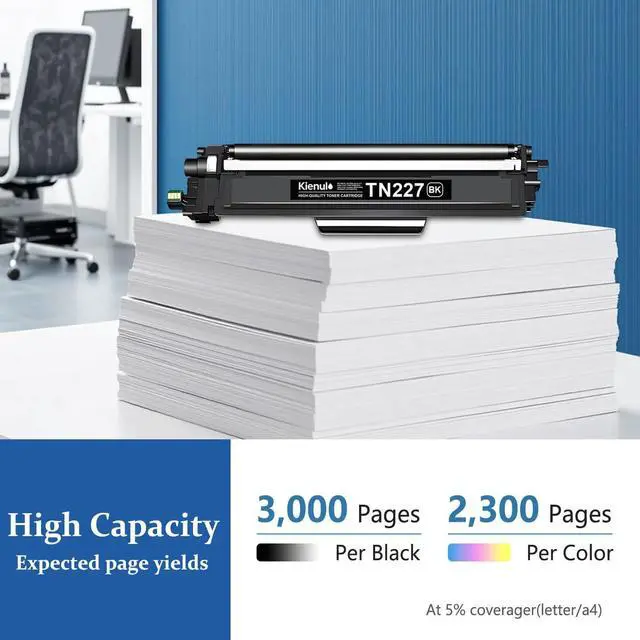 Kienul TN227 toner cartridges are built with premium materials and strict quality control to ensure reliable performance and long-lasting results. Every print is sharp, consistent, and professional, just the way it should be
