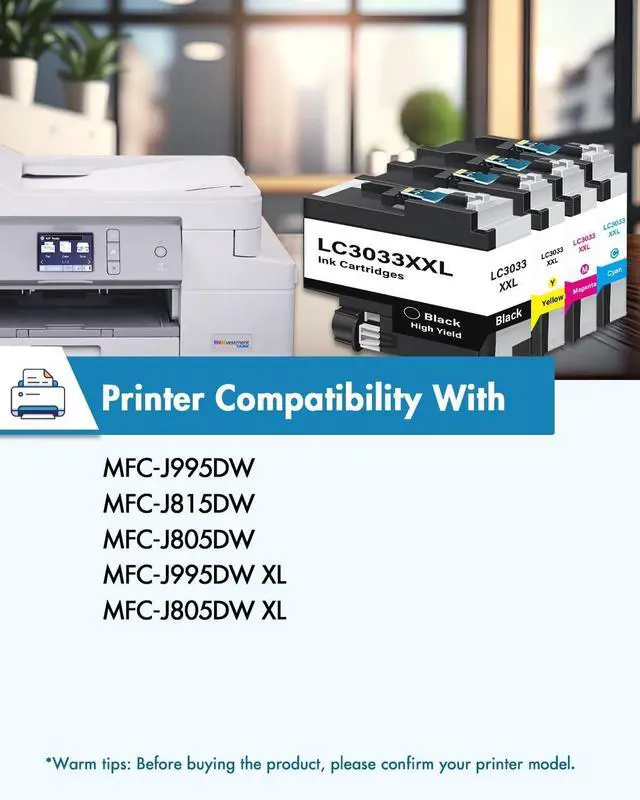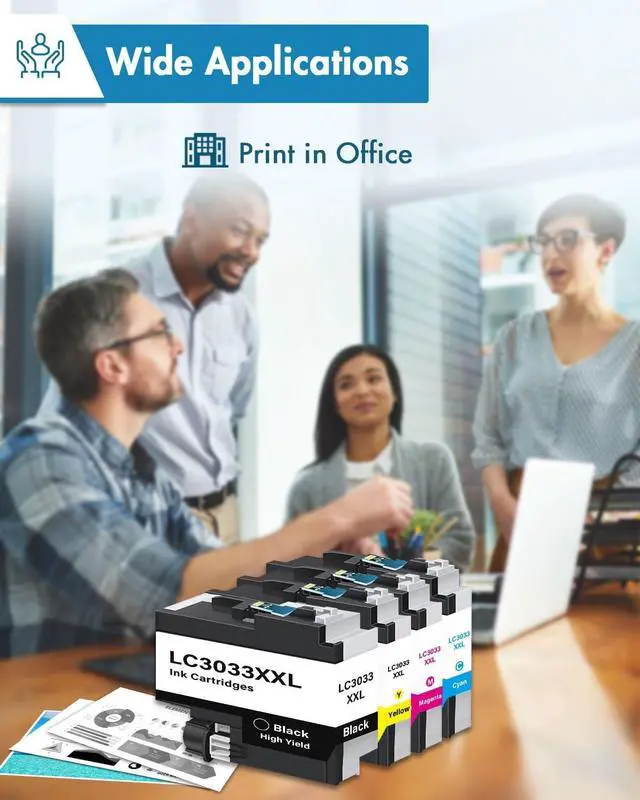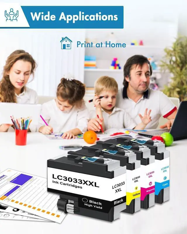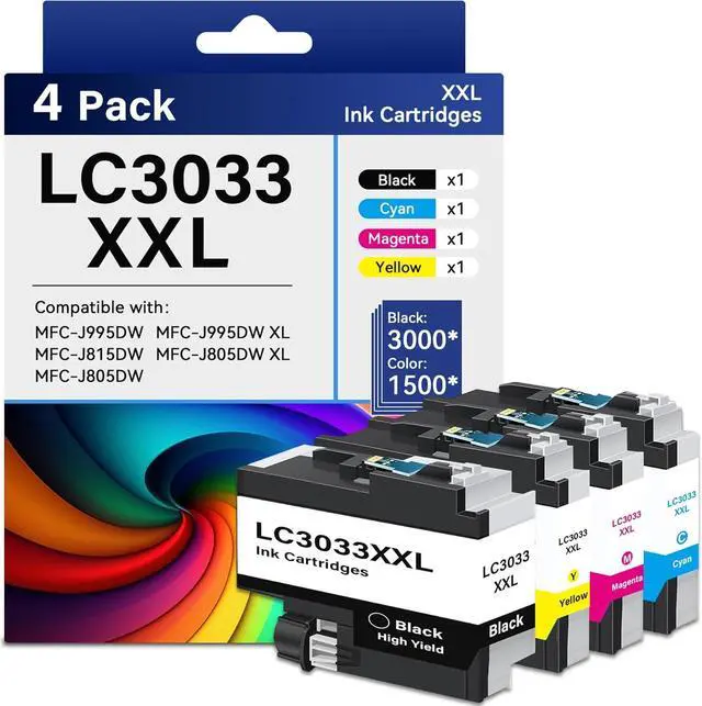 Package Contents: 4 Pack new high-yield LC3033XXL ink cartridges (1Black/1Cyan/1Mangenta/1Yellow)