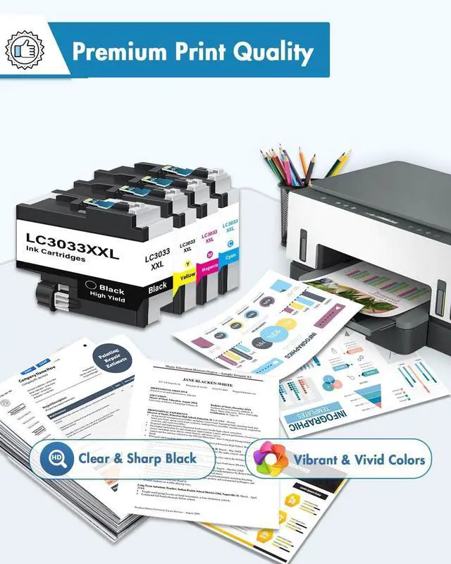 Easy Installation and Seamless Performance: With simple plug-and-play installation, these cartridges are easy to replace and provide a smooth, hassle-free printing experience. Whether youre a beginner or an experienced user, the LC3033XXL 4PK ensures long-lasting and consistent performance with every print