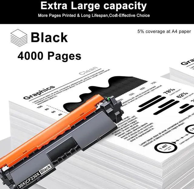 30X CF230X Toner Cartridge Page count: 4000 Pages in Black, Coverage rate of 5%.