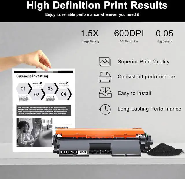 Each 30X CF230X Toner Cartridge undergoes a rigorous quality testing process to ensure its quality and compatibility with printers, guaranteeing smooth printing.