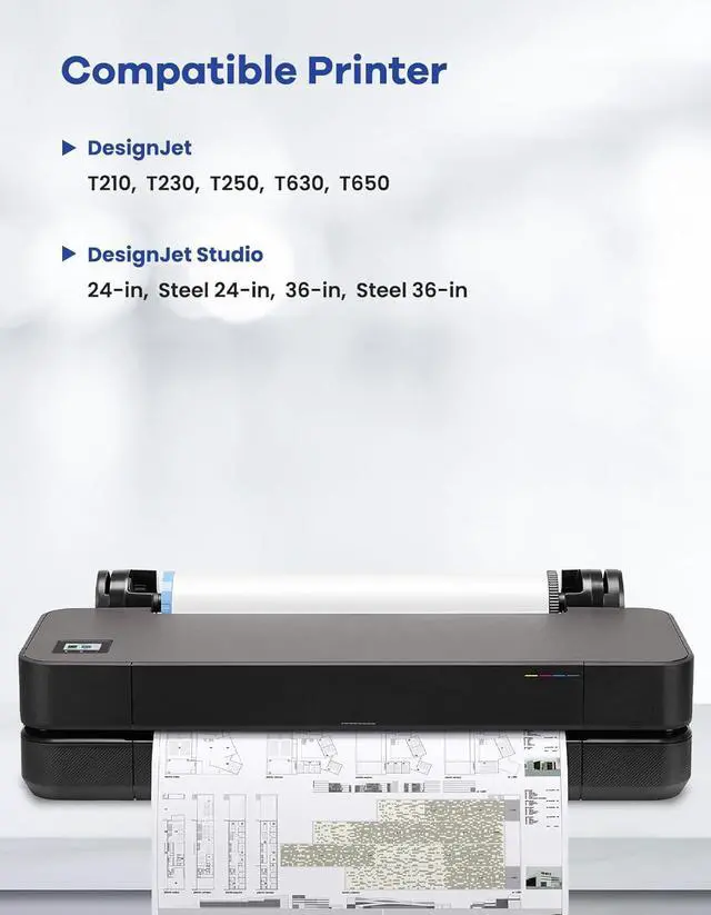 Compatible with HP DesignJet T210, T230, T250, T630, T650. DesignJet Studio 24-in, Steel 24-in, 36-in, Steel 36-in Printer