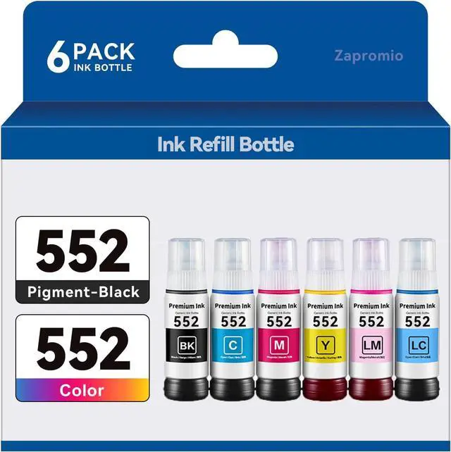 Complete 6-Pack High Yield T552 552 ink refill bottles Black,Photo Black,Cyan, Magenta,Yellow, Gray use for et-8550 et-8500 ink refill bottles, Tailored to handle every printing taskfrom pro-grade photos to crisp, detailed documentswith precision.
