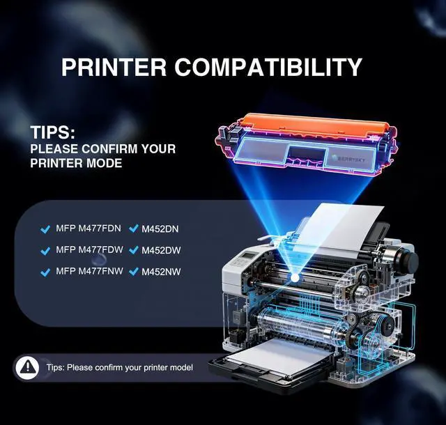 Compatible Printers: Color Pro MFP M477fnw, Color Pro MFP M477fdw, Color Pro MFP M477fdn M477fnw, Color Pro MFP M452nw, color M452dn M452dw M452 M377dw Printer