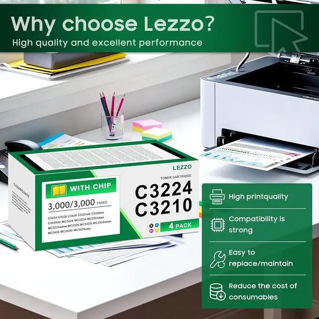 Clarity accuracy: C3224 C3210 C3426 toner cartridge can provide clear and sharp printing effect,the image is rich in color,whether it is printing text documents or pictures,charts,etc,have a good performance,to ensure the print quality and stability