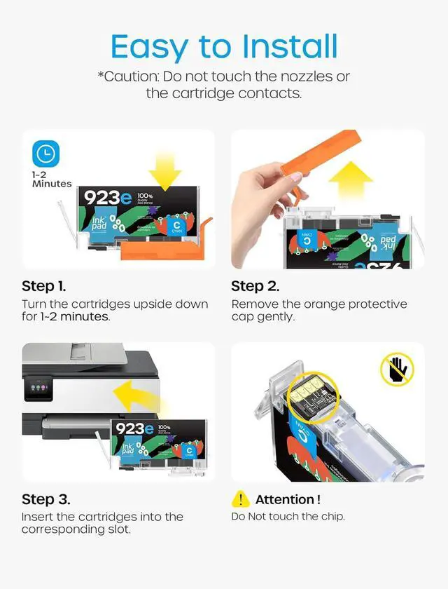 Compatible Printers: 923 923e Ink cartridges compatible with HP OfficeJet Pro 8120 8123 8130 8133 Series Printer